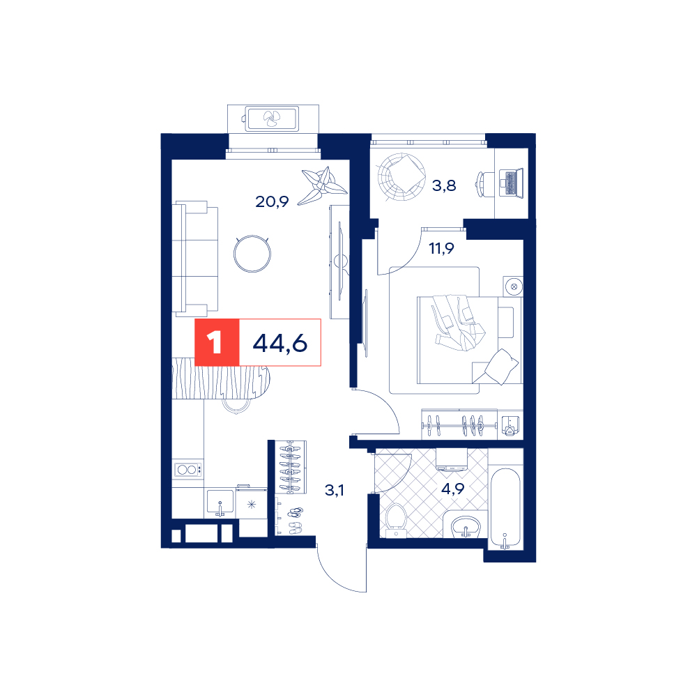 1-комнатная